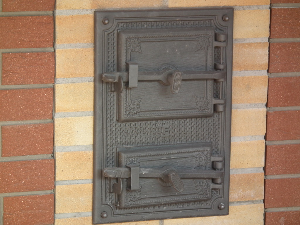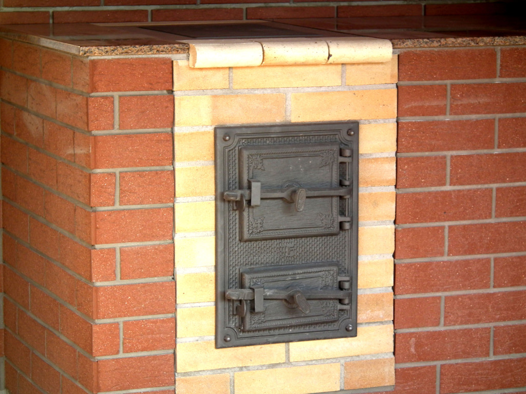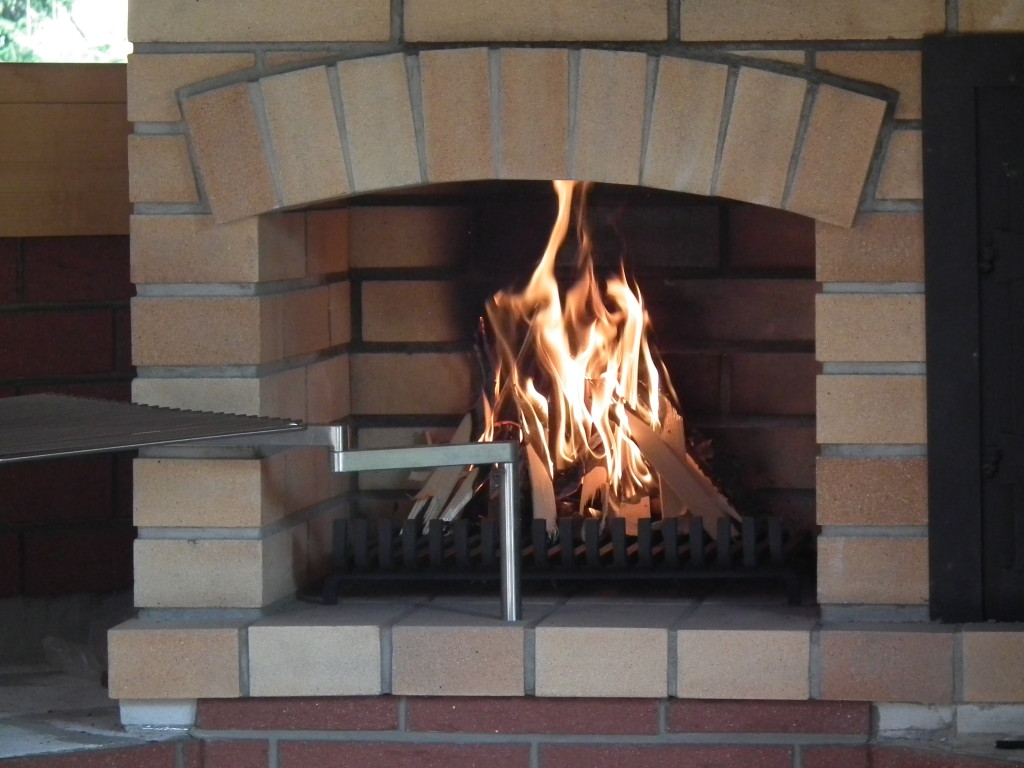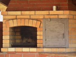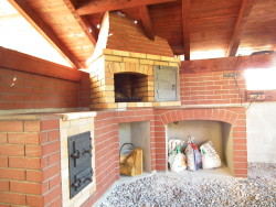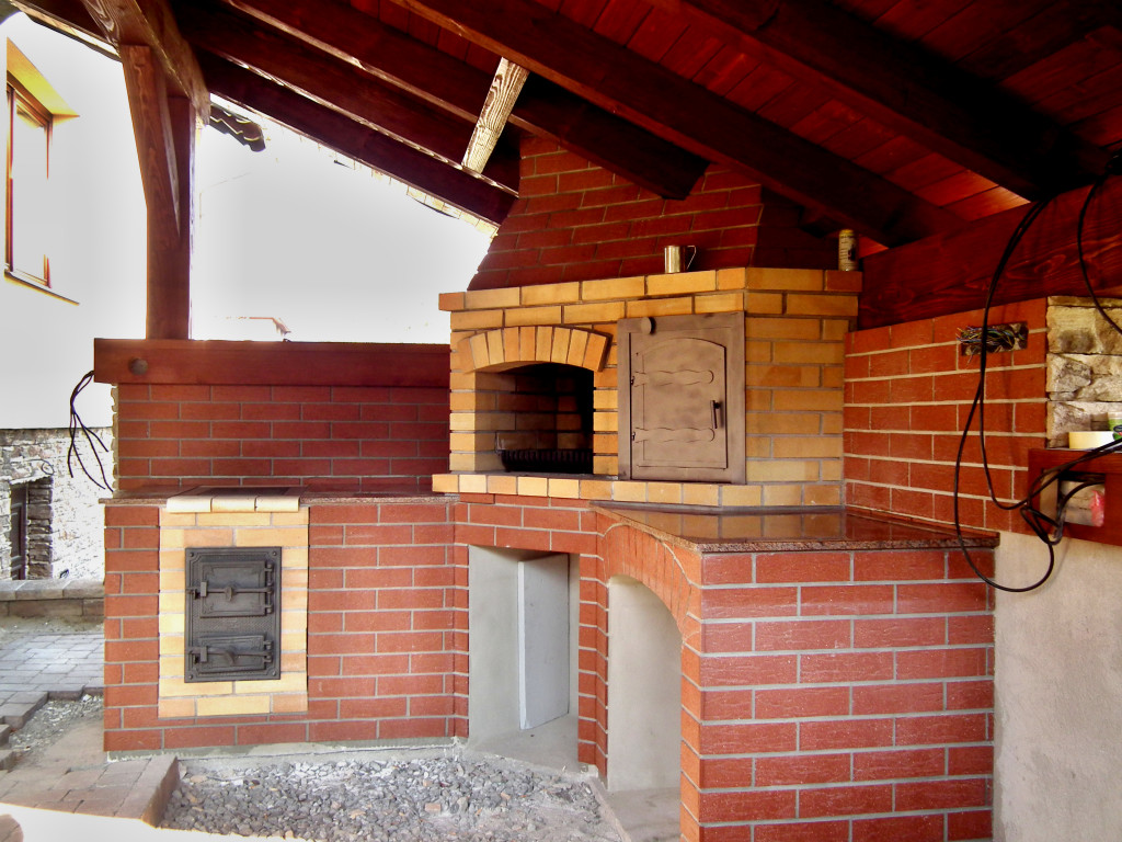 Venkovní krb s píckou a udírnou. Obkladový pásek klinker.