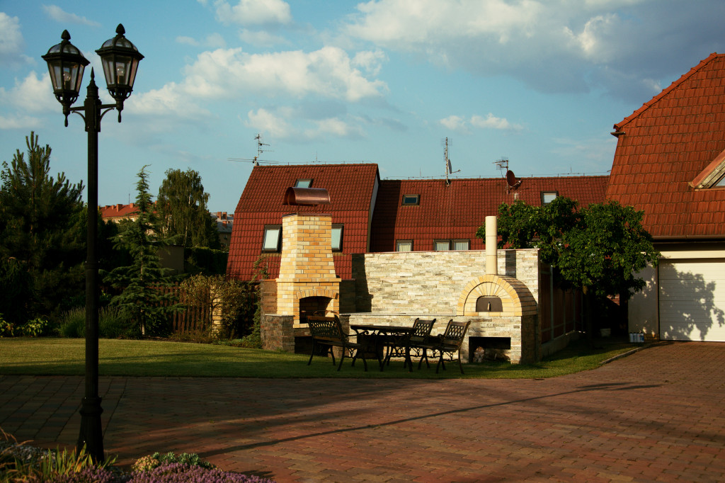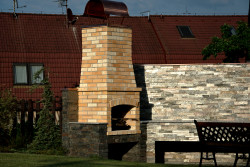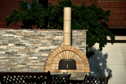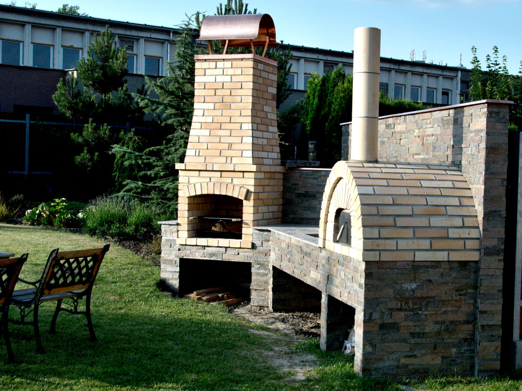 Zahradní pec na pizzu. Prefabrikovaná pec obezděná šamotovou cihlou.