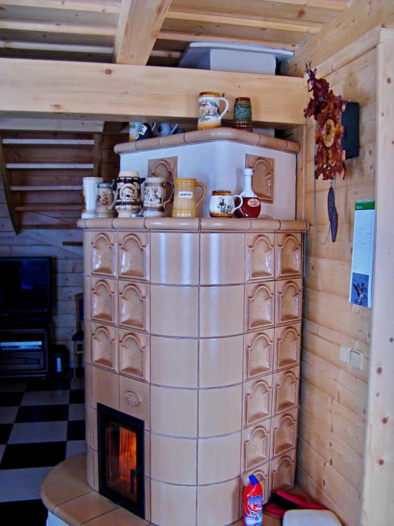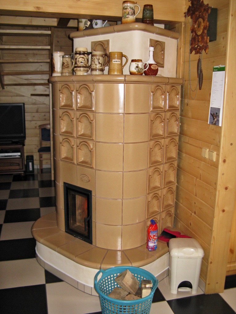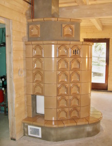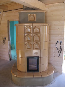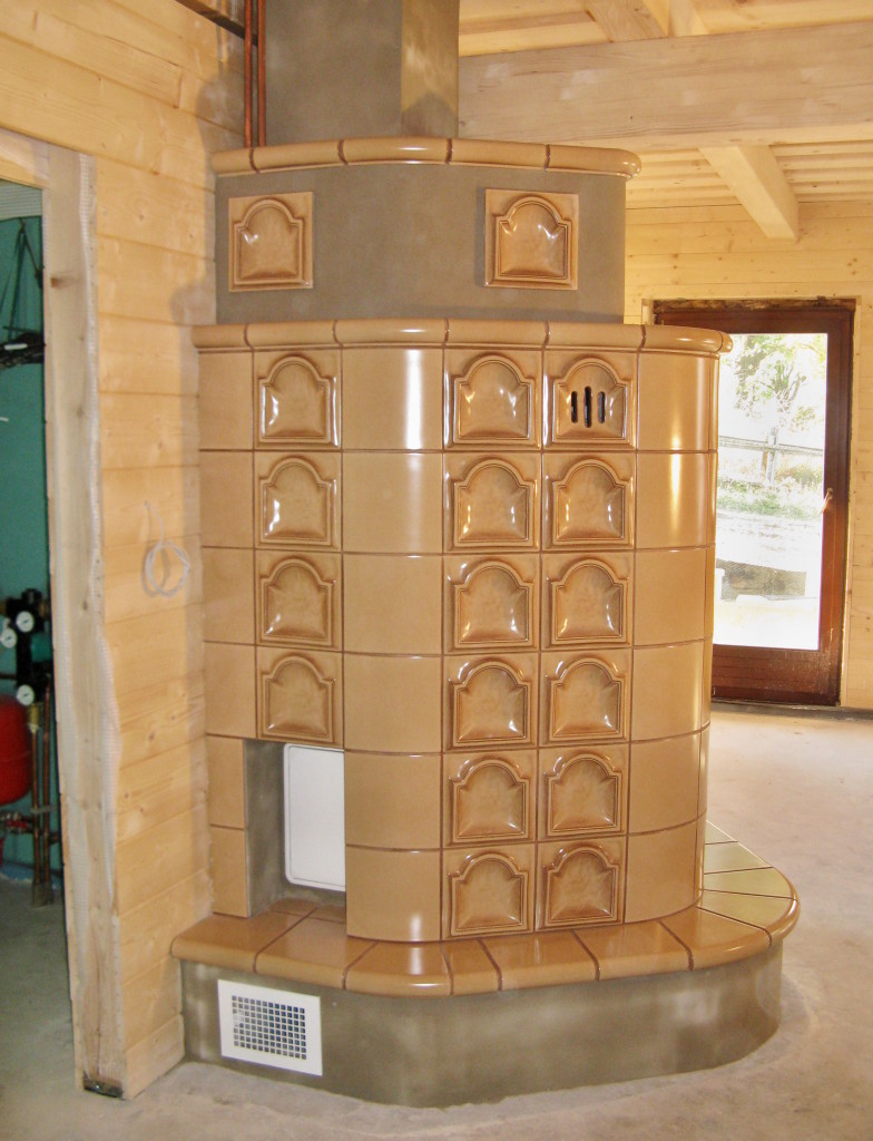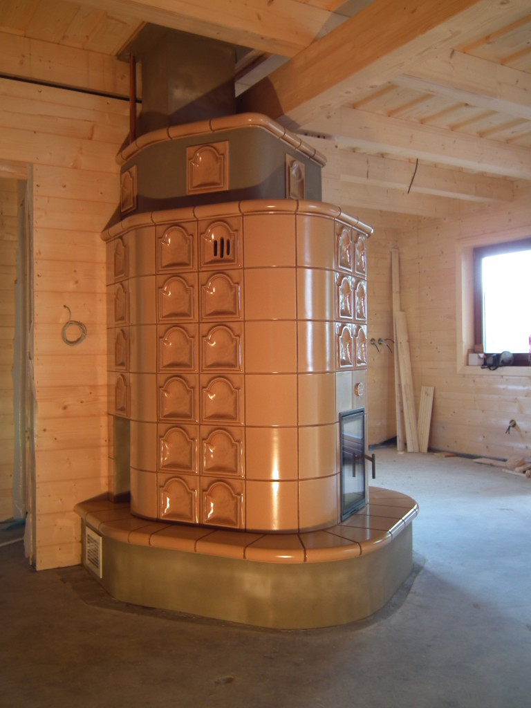 Kachlová kamna s teplovodní kamnovou vložkou ROMOTOP KV075W. Kachloví HEIN.